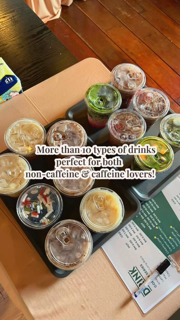Nikmati secawan kopi segar dan minuman popular di suasana kampung yang damai! Pilihan menu termasuk kopi segar, minuman viral, dan kudapan ringan yang pasti buat anda datang lagi 😋☕🥤