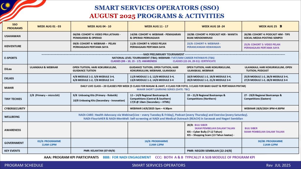 Takwim Perkhidmatan Pintar NADI Ogos 2025